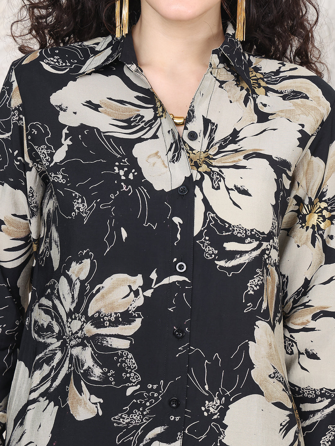 Elevate your style with this elegant black floral printed co-ord set, crafted from premium Chanderi fabric. Lightweight, breathable, and effortlessly chic—perfect for festive outings, casual gatherings, or a touch of everyday glam.