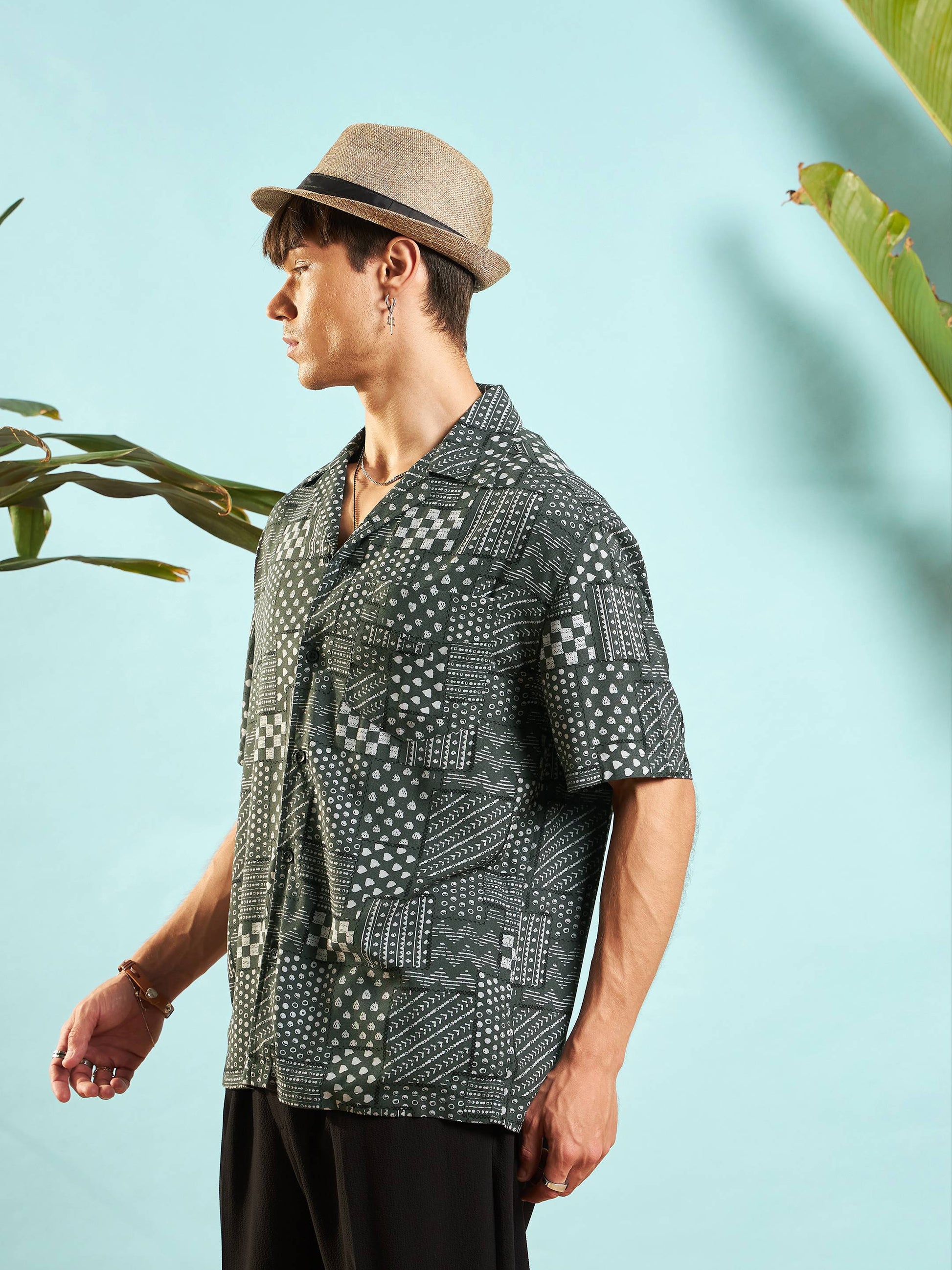 Olive Conversational Print Relax Fit Shirt, in Rayon fabric, NA, Regular Length, Relax Fit, Button Closure, Straight Hemline and features Pocket At Chest