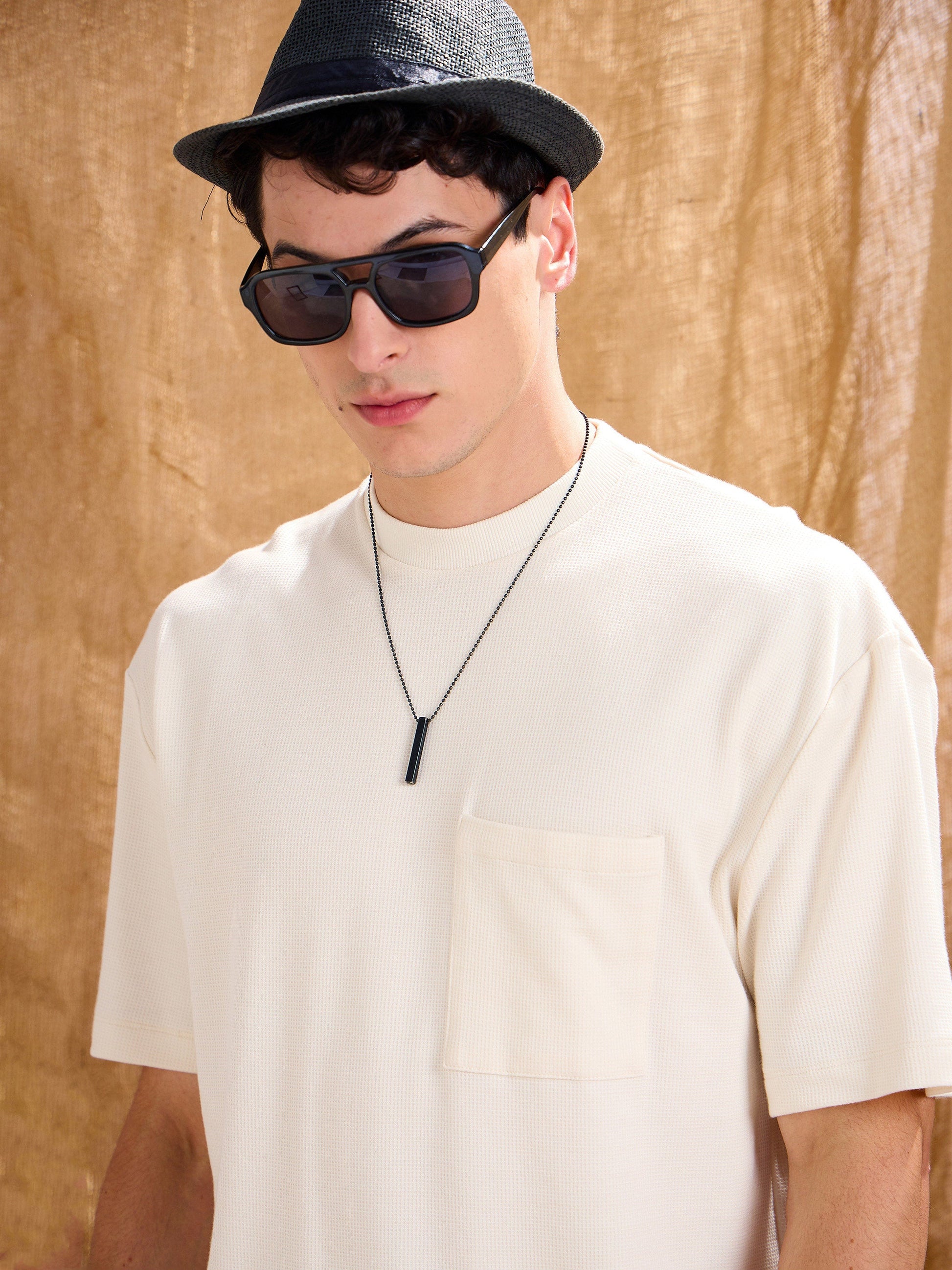 White Waffle Front Pocket Oversize T-Shirt, in Waffle fabric, Unlined, Regular length, Oversize Fit, No Clouser, Straight Hemline and features
