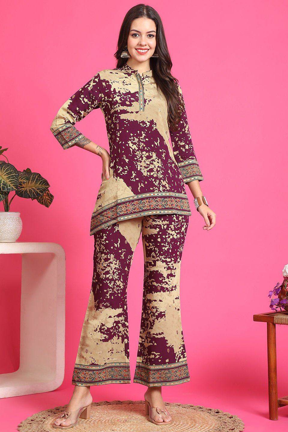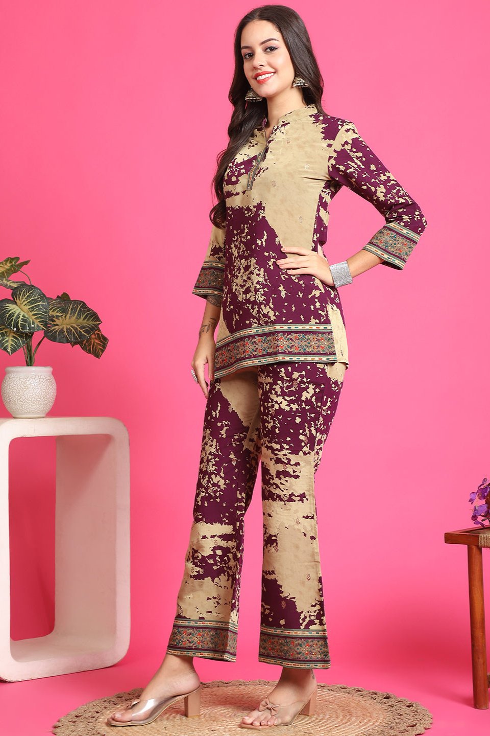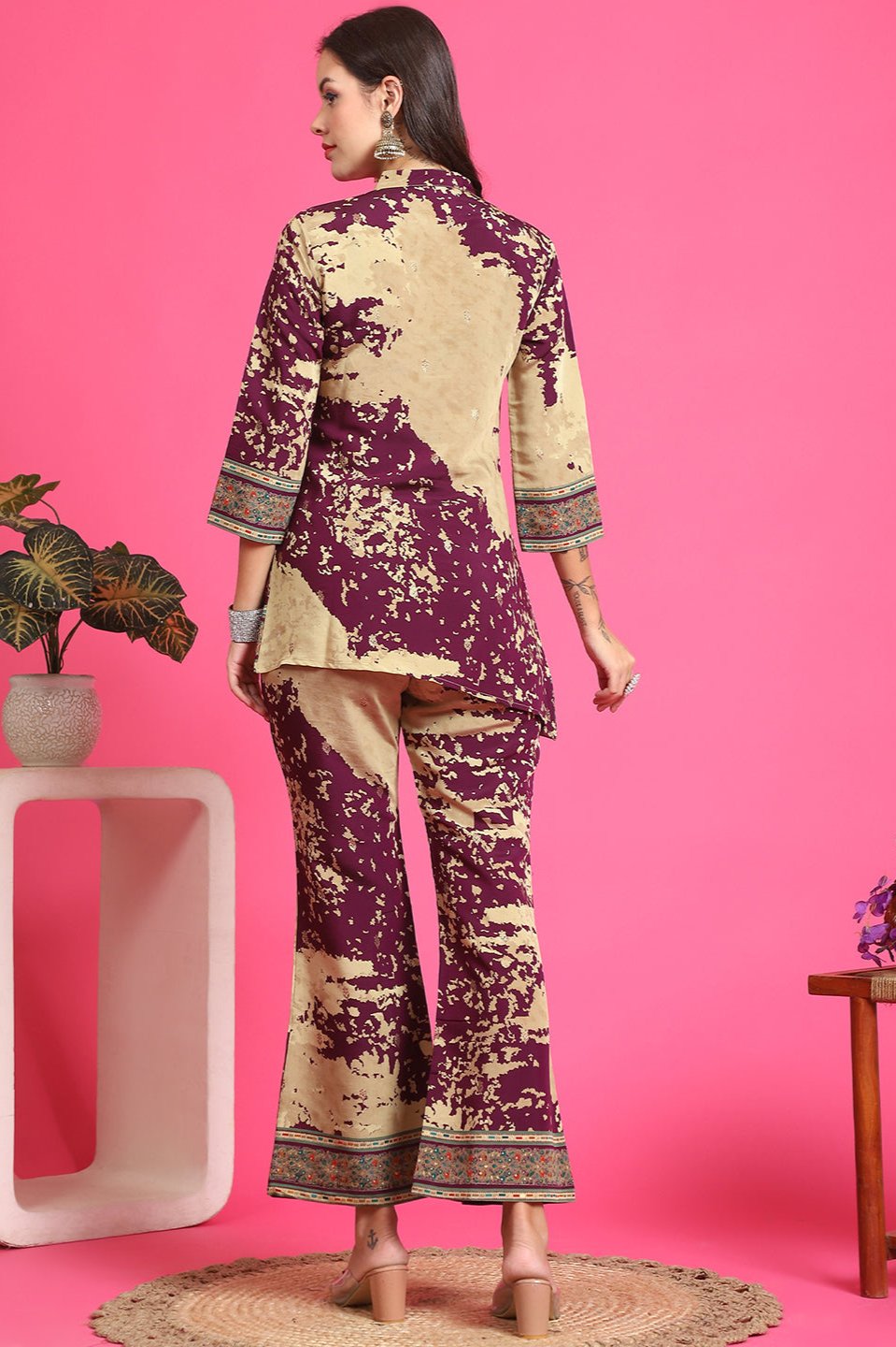 Purple Abstract Printed Premium Chanderi Co-Ord Set for Women