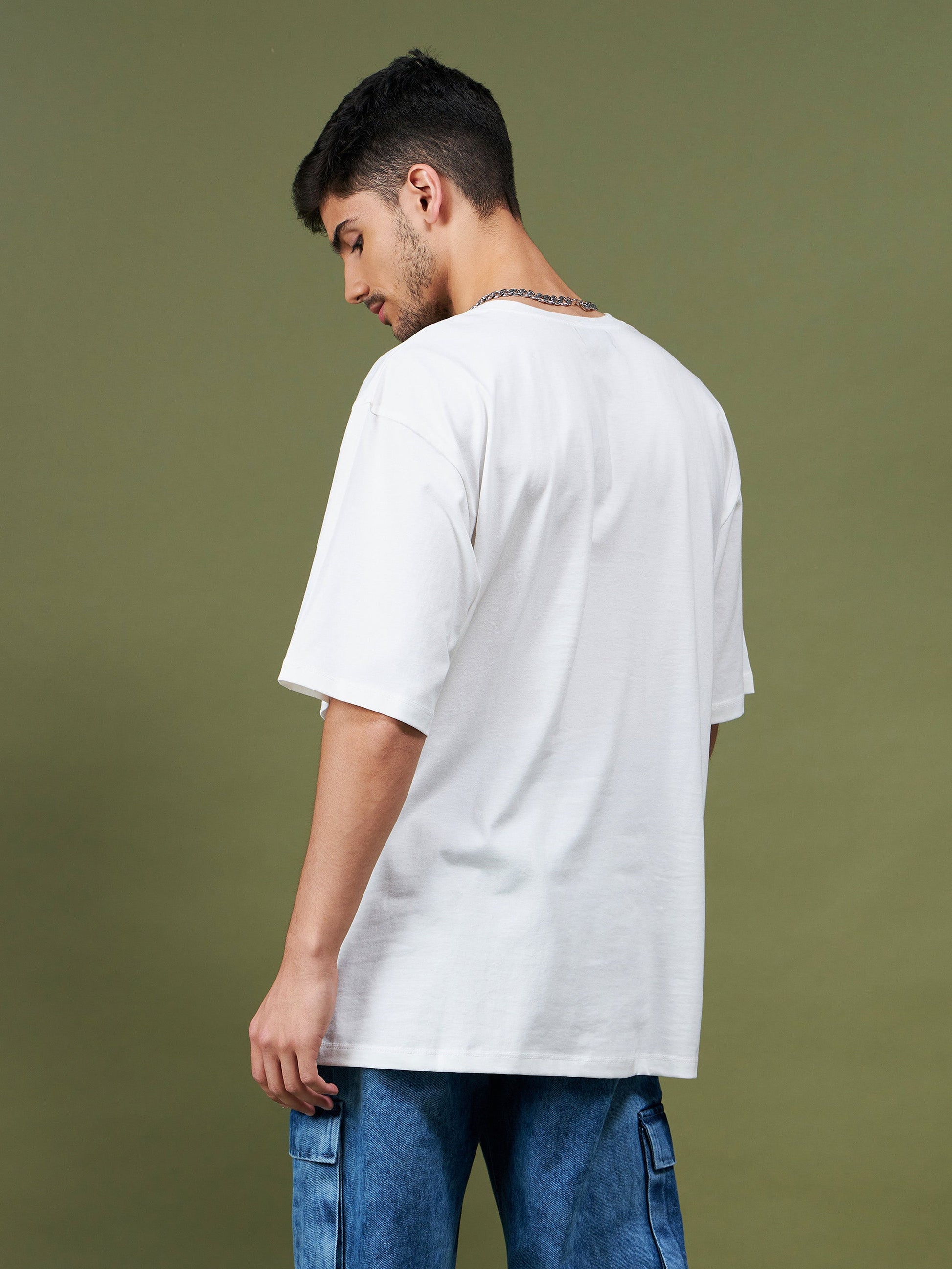 Unisex White STAY WEIRD Oversized T-Shirt, in Cotton fabric, Unlined, Regular length, Oversize Fit, NA, Straight Hemline and features Print Detail At Front