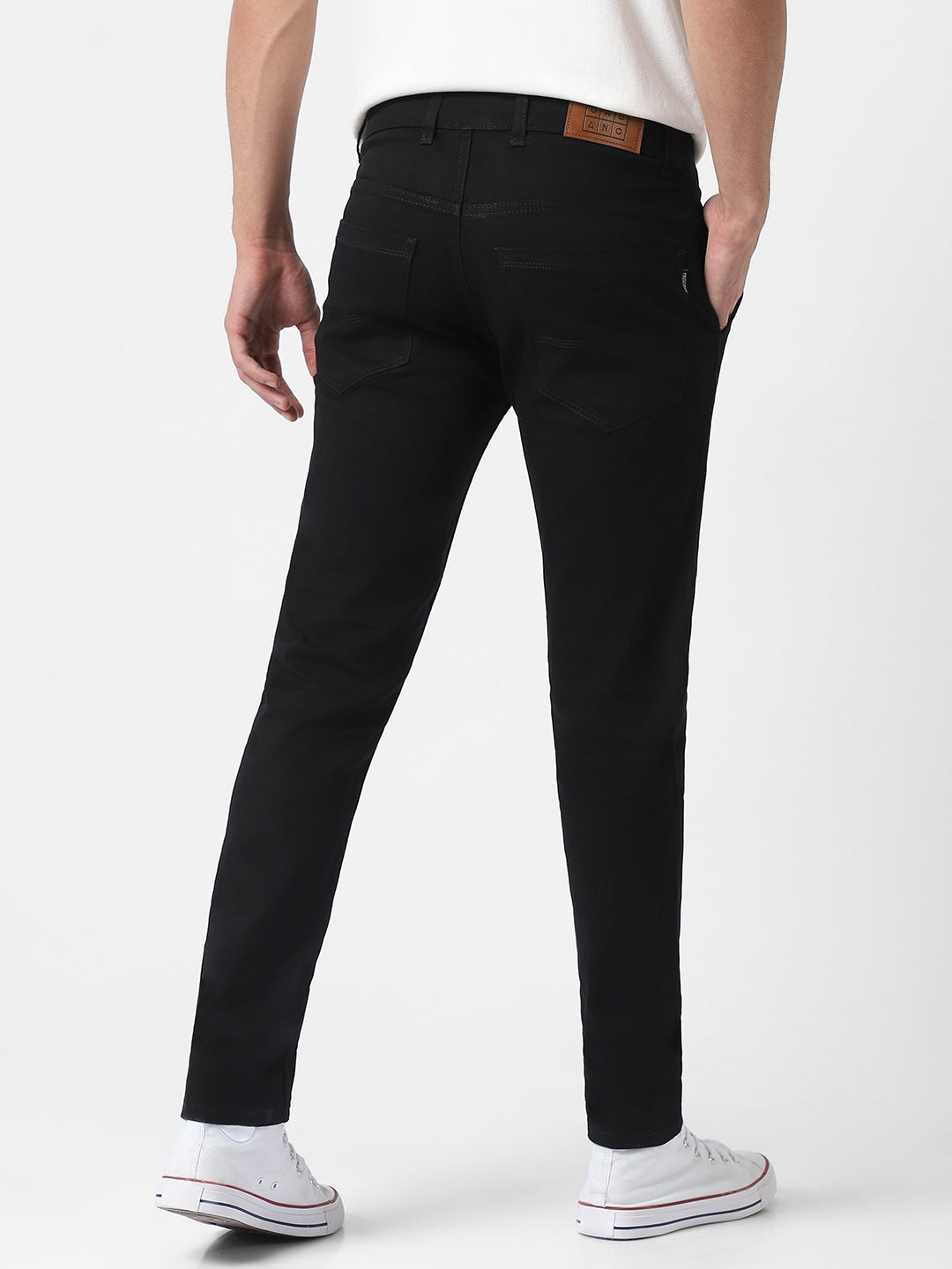 Bring out your stylish best this season in this must-have, classy and trendy men's stretchable solid pattern black jeans from the latest collection of Urbano Fashion. High on style with a casual look and cult solid black pattern, made with superior quality cotton fabric with stretch technology, the slim fit mid-rise jeans are sure to keep you looking stylish and feeling comfortable through the day. Pair these trend-setting jeans with any Urbano Fashion shirt or t-shirt for the perfect casual, evening or party wear look!